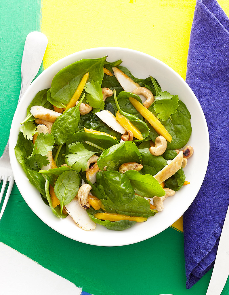 Je vous propose cette recette saine et gourmande à base d’épinards, mangue et poulet. https://www.elle.fr/Elle-a-Table/Recettes-de-cuisine/Salade-d-epinards-au-poulet-et-a-la-mangue-2711911
