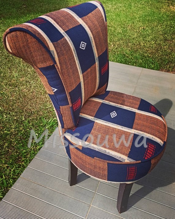 Pour la petite histoire, j’ai commencé chez moi. En rentrant en 2012 en Côte d’Ivoire, je me suis dit que c’était bien dommage de ne pas utiliser nos pagnes traditionnels si beaux et si solides et nos beaux bois pour l’ameublement. Alors j’ai décidé de ne rien acheter d’importé et de me meubler uniquement avec du fabriqué local.