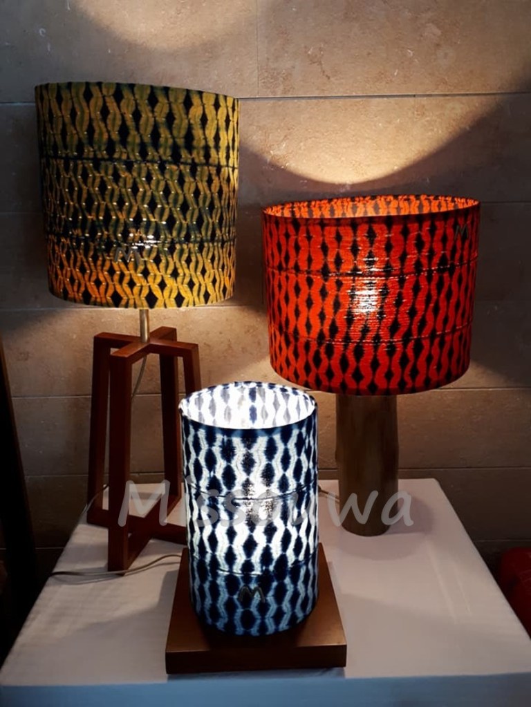 Le pagne tissé est pour moi une matière noble, riche, et aussi très adapté pour de nombreux articles : tissu d’ameublement, lampes, linge de table, lampes, écharpes, accessoires.