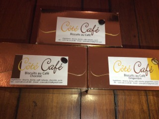 Alors, en plus des biscuits au café, nous proposons trois autres saveurs: café-gingembre, café-pépite de chocolat, café-poivre (parfait pour les apéro!).