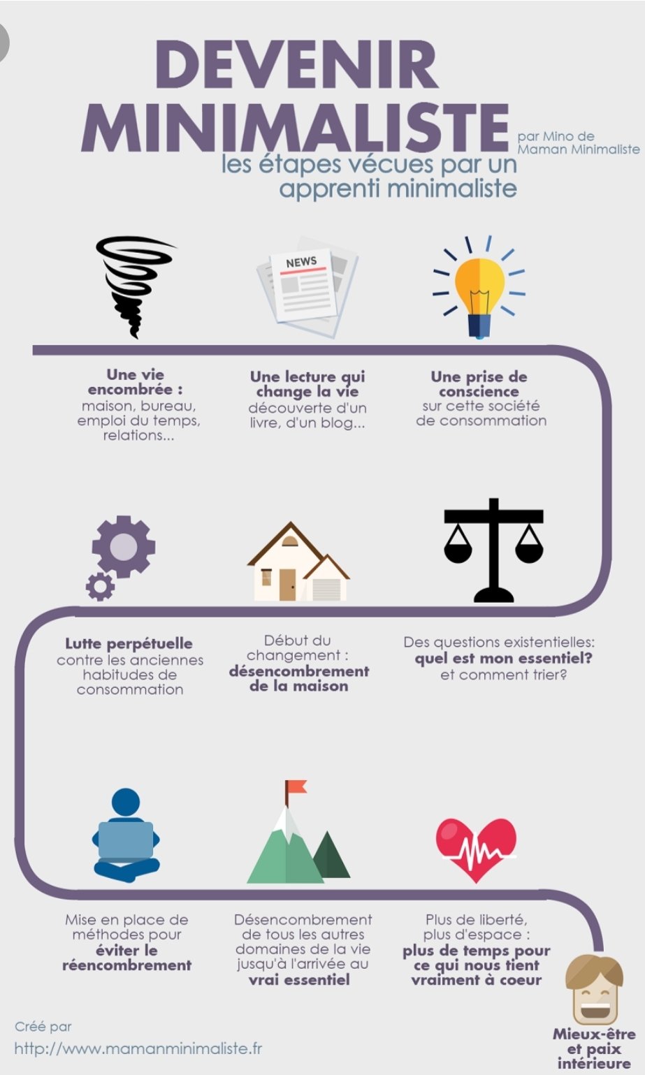 Une expérience de vie, qui fait son chemin, car désormais vous pouvez suivre et commencer les étapes, grâce aux différents bloggeurs minimaliste, qui partage leurs expériences, leurs doutes et leurs espoirs, leurs bien-être.